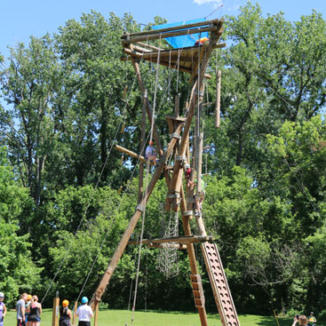 Bradford Woods has many exceptional programming areas and activities including a waterfront area which features canoeing, fishing, swimming, and paddle boat and pontoon boating, a 50-foot climbing alpine tower, a fully accessible zip line and swimming pool, adaptive and therapeutic archery and a creative arts facility.